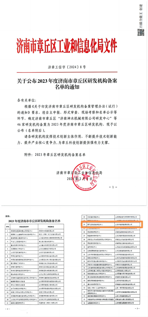 熱烈祝賀山東中拓新能源有限公司榮獲2023年度章丘區(qū)研發(fā)機(jī)構(gòu)備案企業(yè)