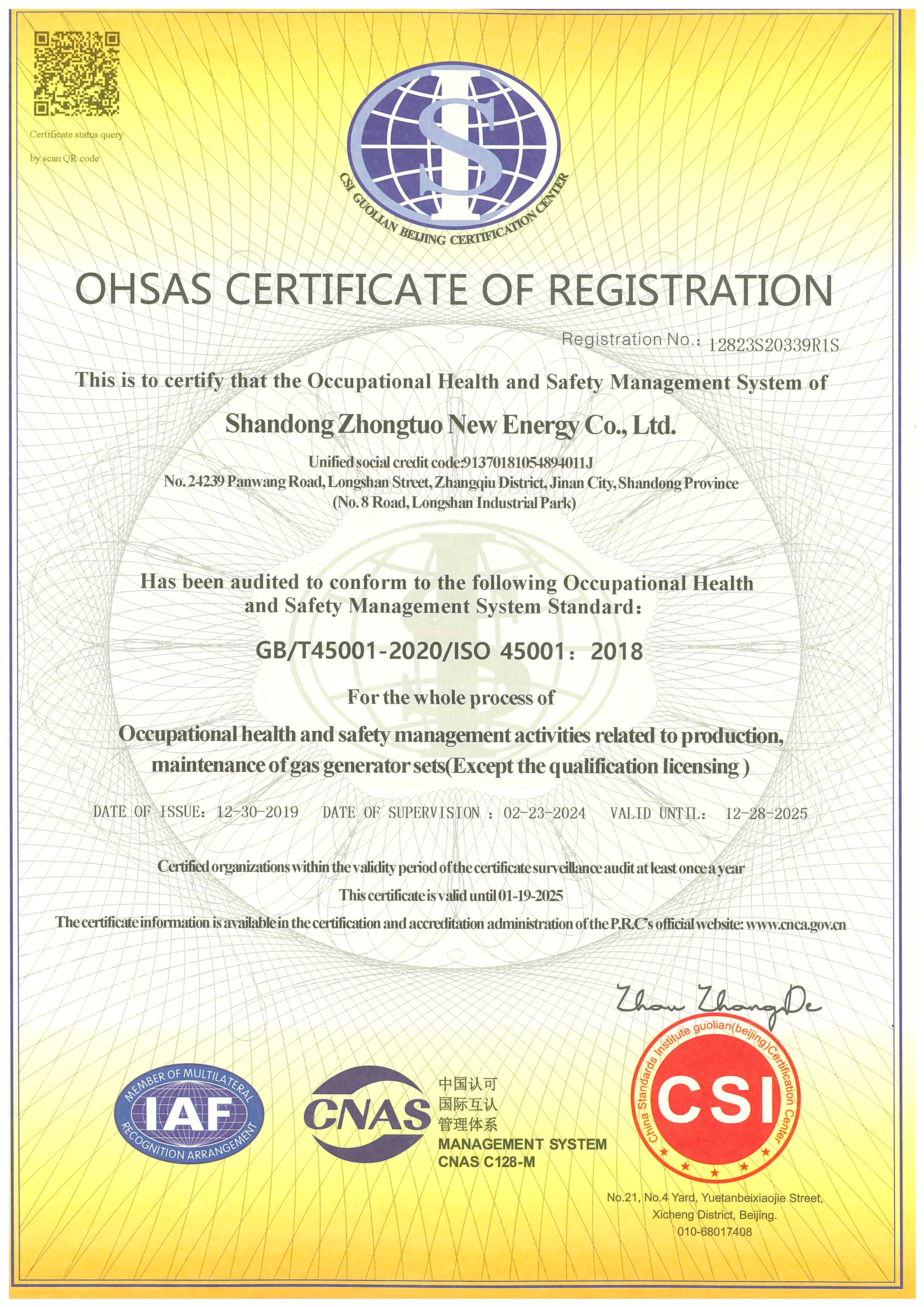 職業(yè)健康安全管理體系認(rèn)證證書(shū)國(guó)際版
