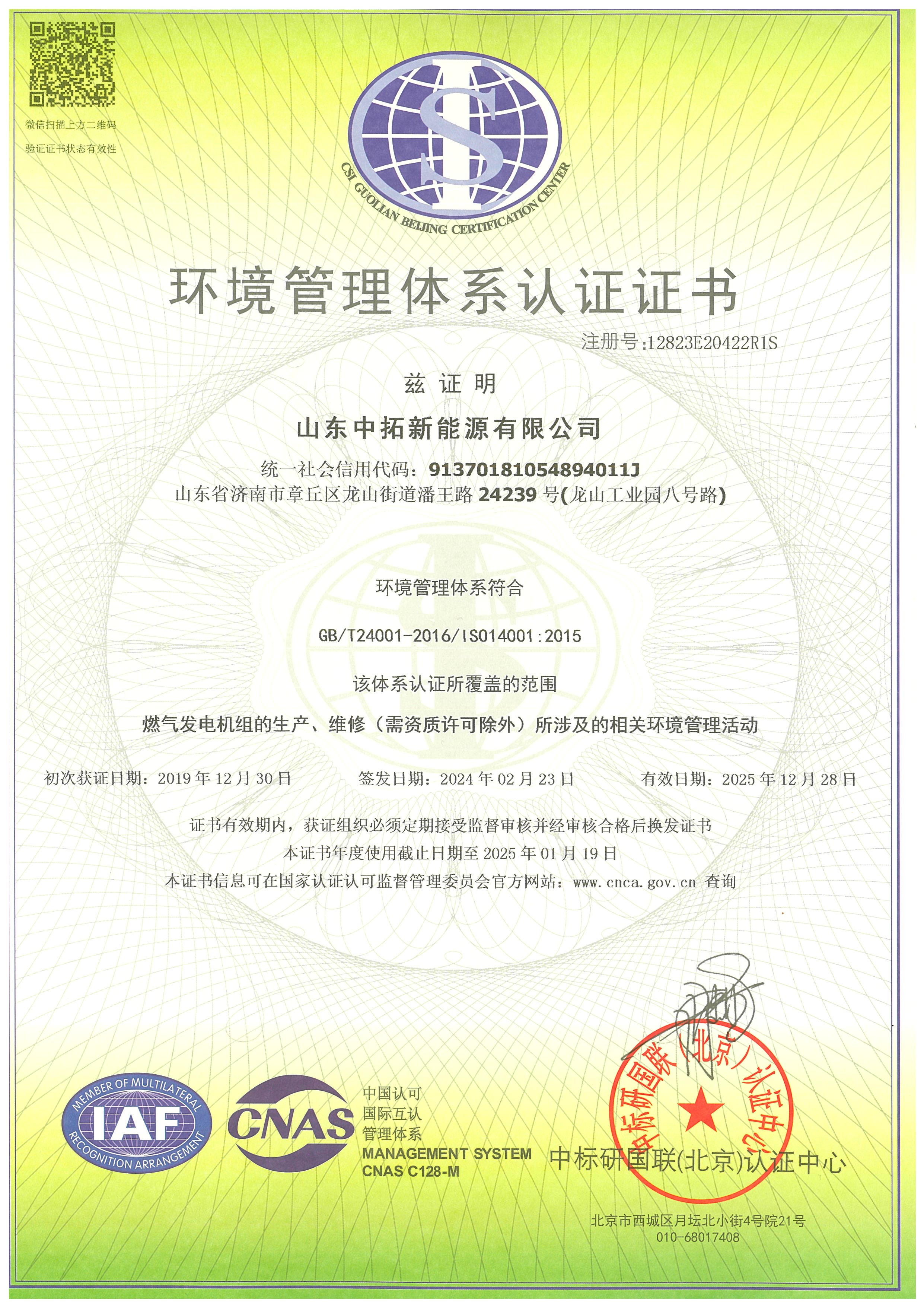 環(huán)境管理體系認(rèn)證證書(shū)國(guó)際